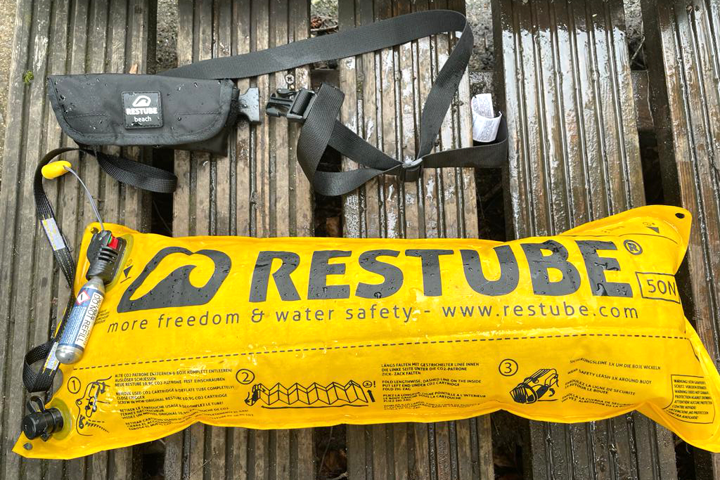 Die Restube Automatic ist eine bei Wasserkontakt auslösende, selbstaufblasende Schwimmhilfe.